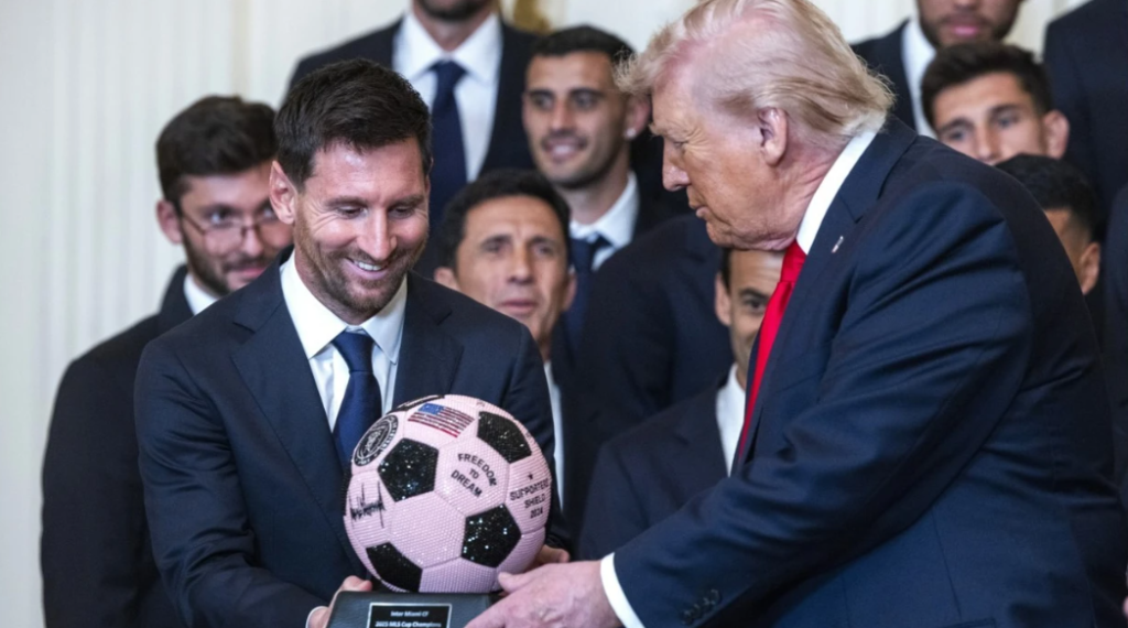 Gjatë ceremonisë, Messi dhe bashkëlojtarët e tij i dhuruan Trumpit një top futbolli rozë dhe një fanellë të personalizuar të Inter Miamit. Ylli argjentinas nuk mbajti fjalim gjatë ngjarjes, por ishte në qendër të vëmendjes gjatë gjithë ceremonisë në Shtëpinë e Bardhë.